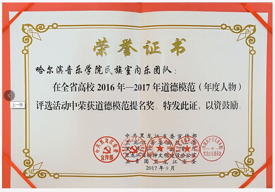 12月25日,全省高校2016年-2017年道德模范(年度人物)发布仪式在东北农业大学举行,9778818威尼斯民乐系民族室内乐团喜获全省高校2016-2017年道德模范提名奖,并携《乐咏龙江》奏响发布会现场,成为学院第一支获得省级以上奖励的团队。