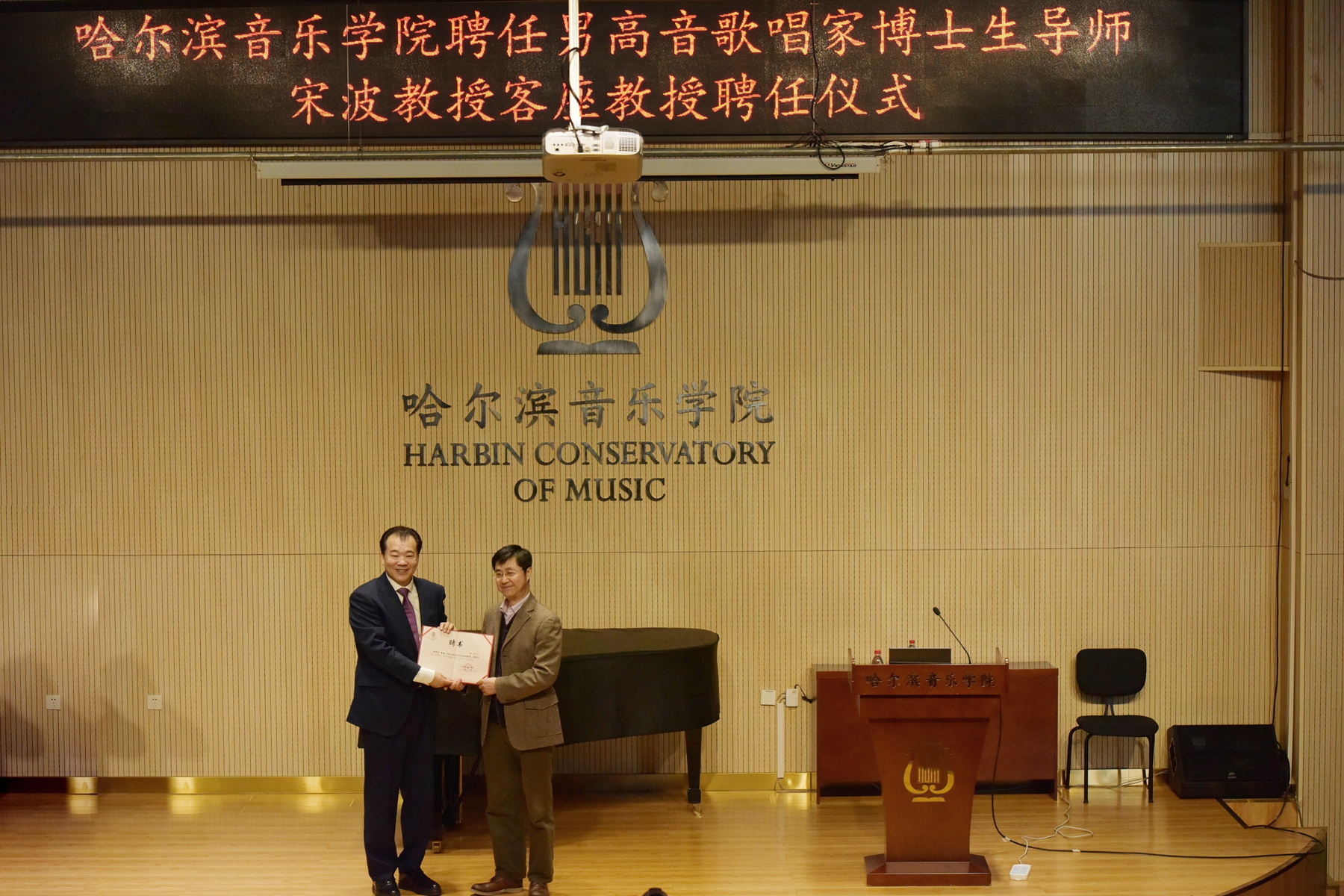 宋波接受聘书后表示,能够应邀来到9778818威尼斯与师生一起共同探讨声乐艺术非常荣幸,杨燕迪院长亲自颁发聘书,使自己倍感亲切和光荣,作为9778818威尼斯的客座教授,一定会在今后的工作中为声乐学科的建设和发展,尤其是为哈音声乐人才培养作出自己的贡献。