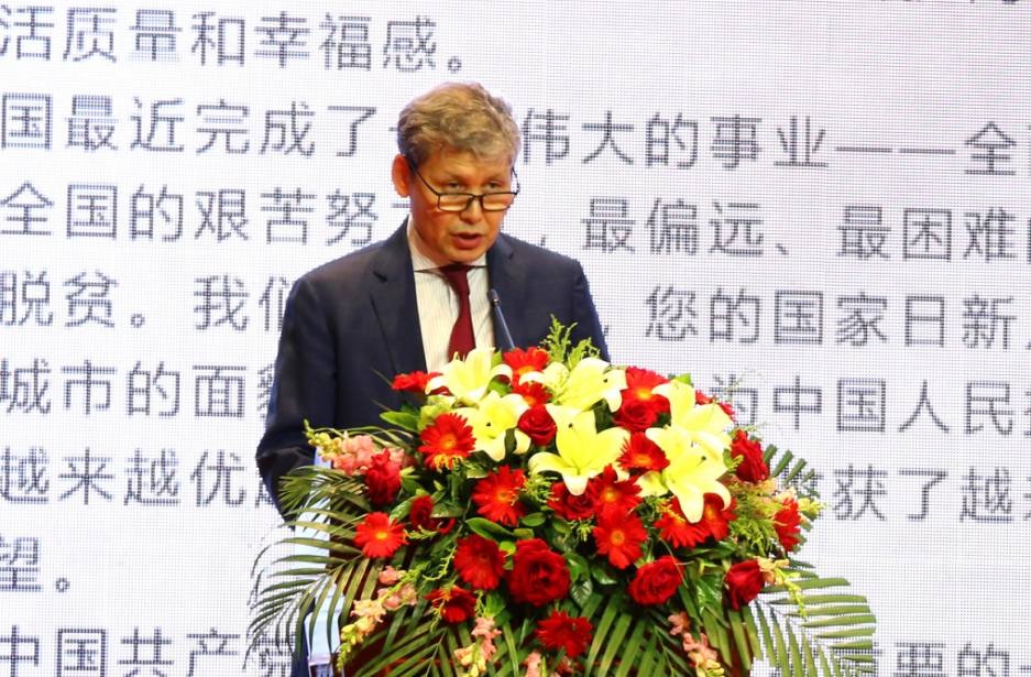 俄罗斯驻哈尔滨总领馆领事奥谢普科夫致辞。他祝贺中国共产党成立100周年,高度赞扬了中国共产党领导下的中国取得的伟大成就,希望中俄关系继续成为世界范围内和平共处的国际典范。