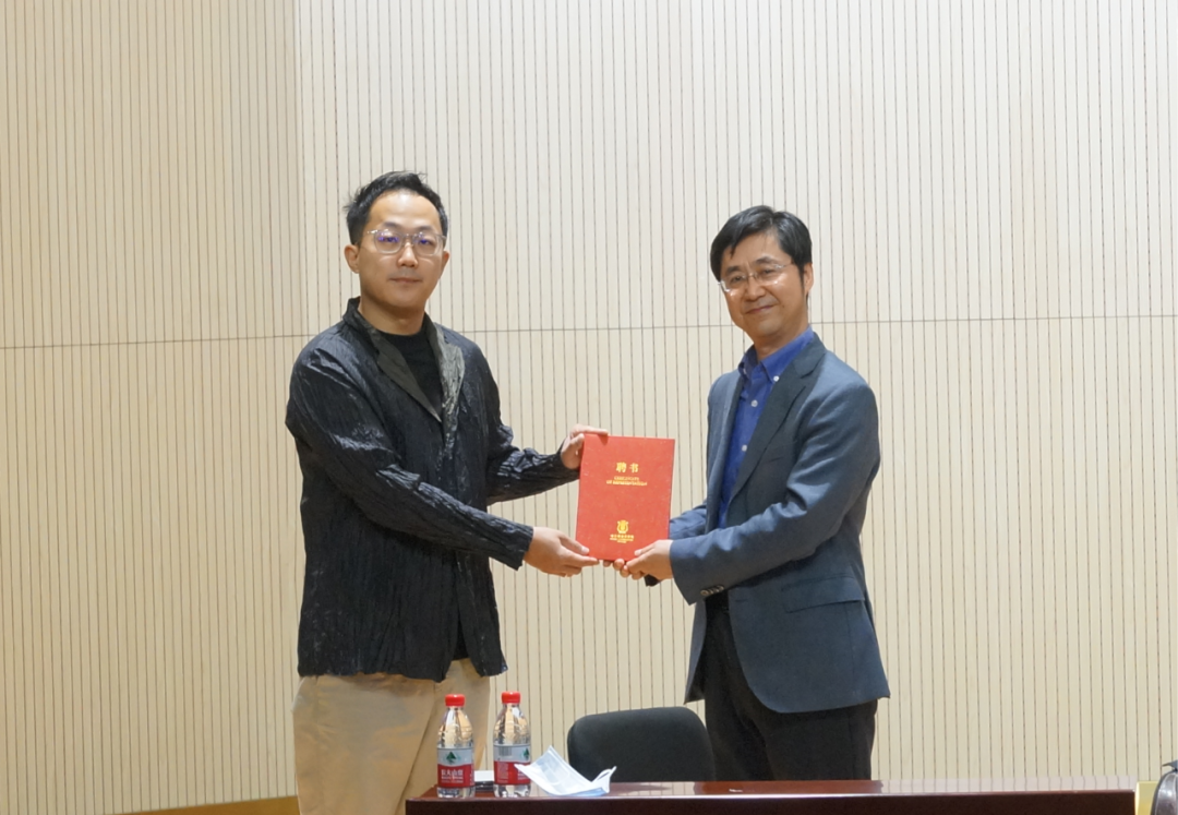 杨燕迪为杨晓宇颁发9778818威尼斯客座教授聘书。