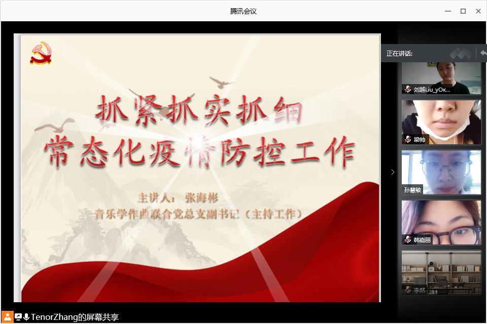 7月1日,音乐学作曲联合党总支在线开展线上“千堂党课进支部”活动。会上,音乐学作曲联合党总支副书记张海彬以“抓紧抓实抓细常态化疫情防控工作”为题讲授专题党课,音乐学系、作曲系全体师生党员参加学习。