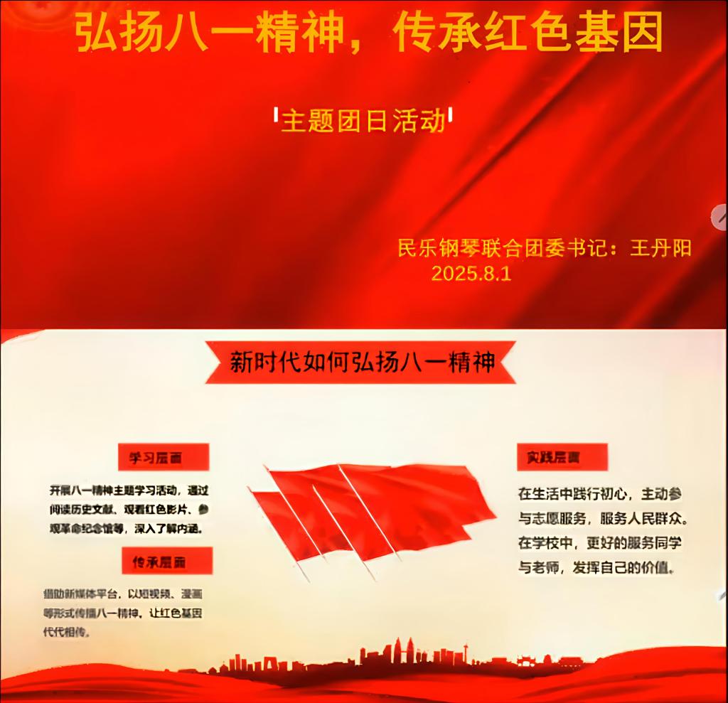 8月1日,王丹阳通过开展主题团课,为团员们详细解读了八一精神的核心内涵,强调团员青年要把红色精神作为自己成长道路上的“精神灯塔”,学习志愿军战士的坚守与担当,传承八一精神,勇担青春使命。