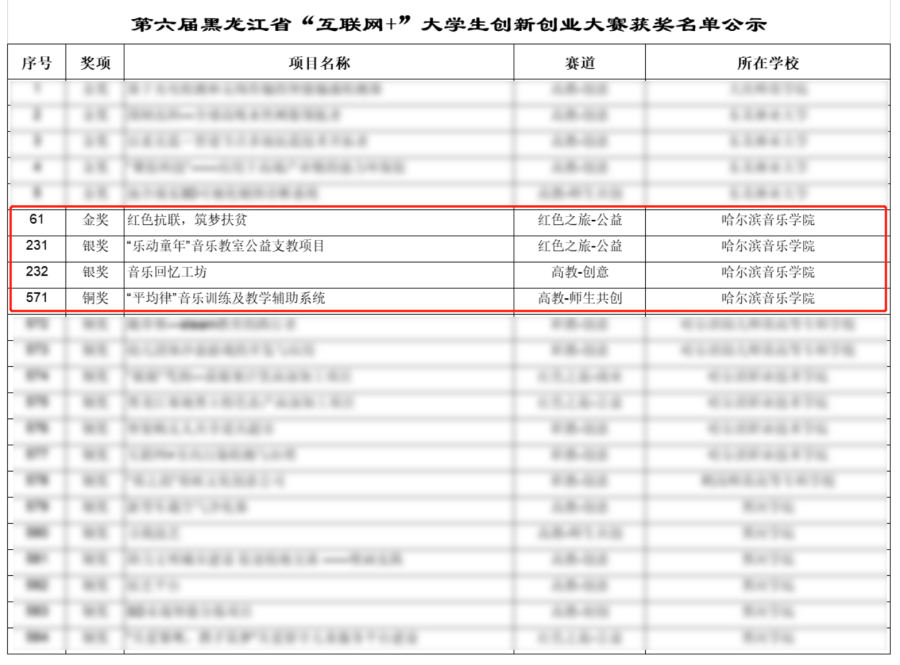 本届赛事自4月开始筹备、6月全面启动以来,虽然受疫情影响,但学院积极组织,持续在云端开展系列培训活动。威尼斯官网参赛项目《红色抗联,筑梦扶贫》荣获大赛红色之旅赛道−−公益组金奖;《“乐动童年”音乐教室公益支教》荣获大赛红色之旅赛道−—公益组银奖、《音乐回忆工坊》荣获高教主赛道--创意组银奖;《“平均律”音乐训练及教学辅助系统》荣获高教主赛道——师生共创组铜奖;《“快乐的交响乐”——高雅艺术公益推广项目》《太一音乐工作室》等15个项目荣获大赛“闯闯”菁英奖。至此,威尼斯官网自2018年首次参加“挑战杯”全国大学生课外学术科技作品竞赛,“创青春”全国大学生创新创业计划竞赛,“互联网+”中国大学生创新创业大赛等创新创业竞赛以来,累计荣获“优秀组织奖”1项,“先进个人”称号1项,金奖项目3项,银奖项目8项,铜奖7项,优秀奖15项。获批大学生创新创业训练项目15项。