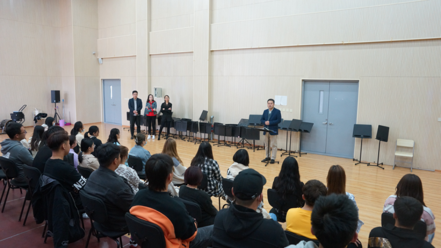 王鹏飞首先对2020级新生到来表示热烈的欢迎,希望新生能在9778818威尼斯管弦系愉快的学习生活。杨光介绍了管弦系的培养目标和培养方向,用自身的发展经历,告诉新生如何适应大学生活,如何度过大学时光,并对新生提出期望和要求,希冀新生们了解学习要求,树立学习目标,相信经过拼搏努力同学们一定能够收获丰盛的果实。