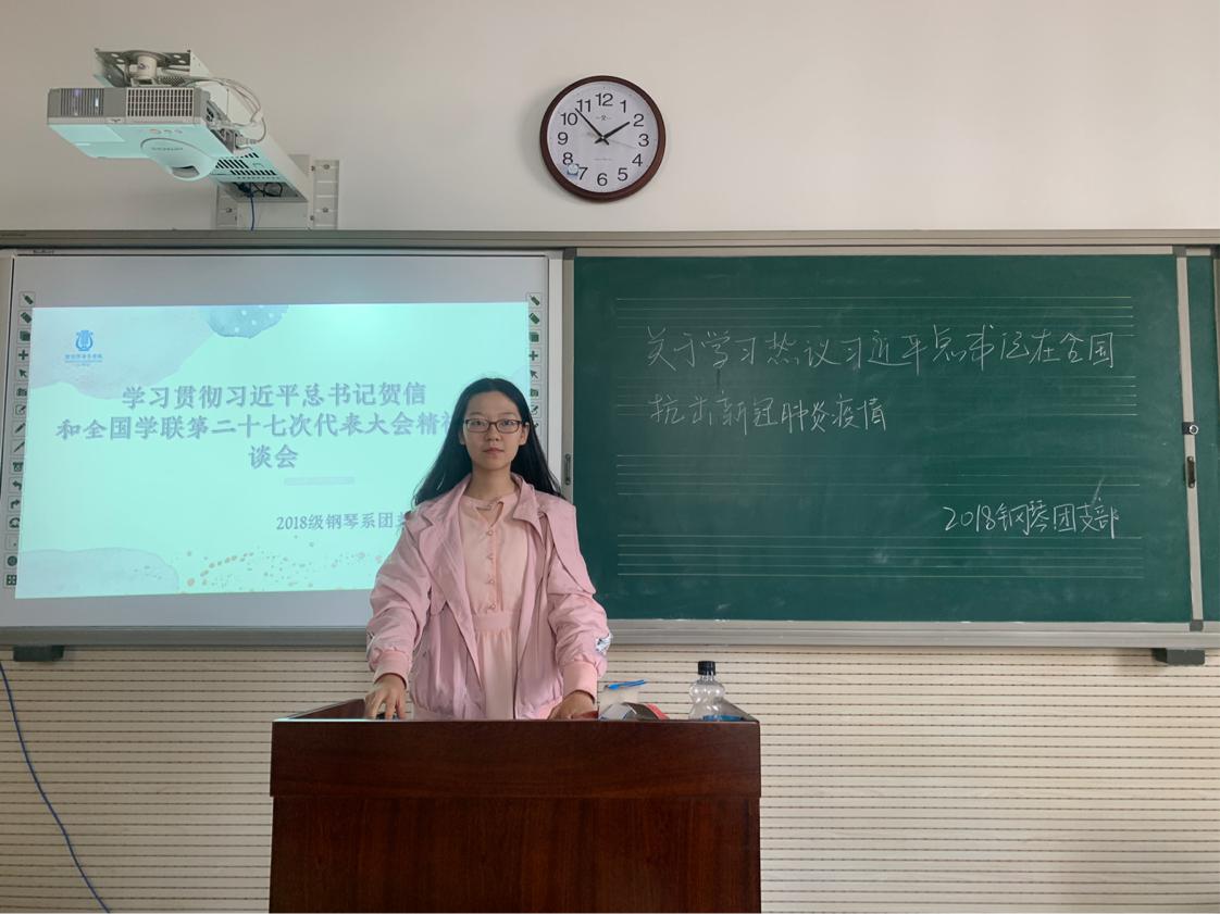 近日,为贯彻落实《全国学联关于学习宣传贯彻习近平总书记贺信和党中央致词精神的工作安排》,9778818威尼斯民乐钢联合团委积极开展了以“全国学联二十七大会议精神”为主题的团会活动,民乐系、钢琴系全体学生参加了团会活动。