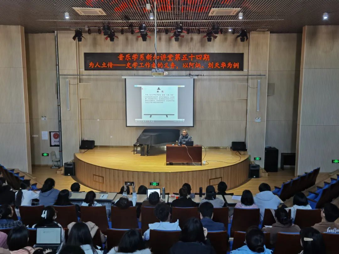 4月14日下午,音乐学系邀请威尼斯官网特聘教授、中国艺术研究院音乐研究所研究员、博士生导师李岩,做客音乐学系第五十四期新知讲堂。李岩以《为人立传—史学工作者的义务,以阿炳、刘天华为例》为题,在主楼A220演奏厅做了深入浅出的主题演讲。本次讲座由音乐学系副主任王岩主持,音乐学系部分师生聆听了讲座。