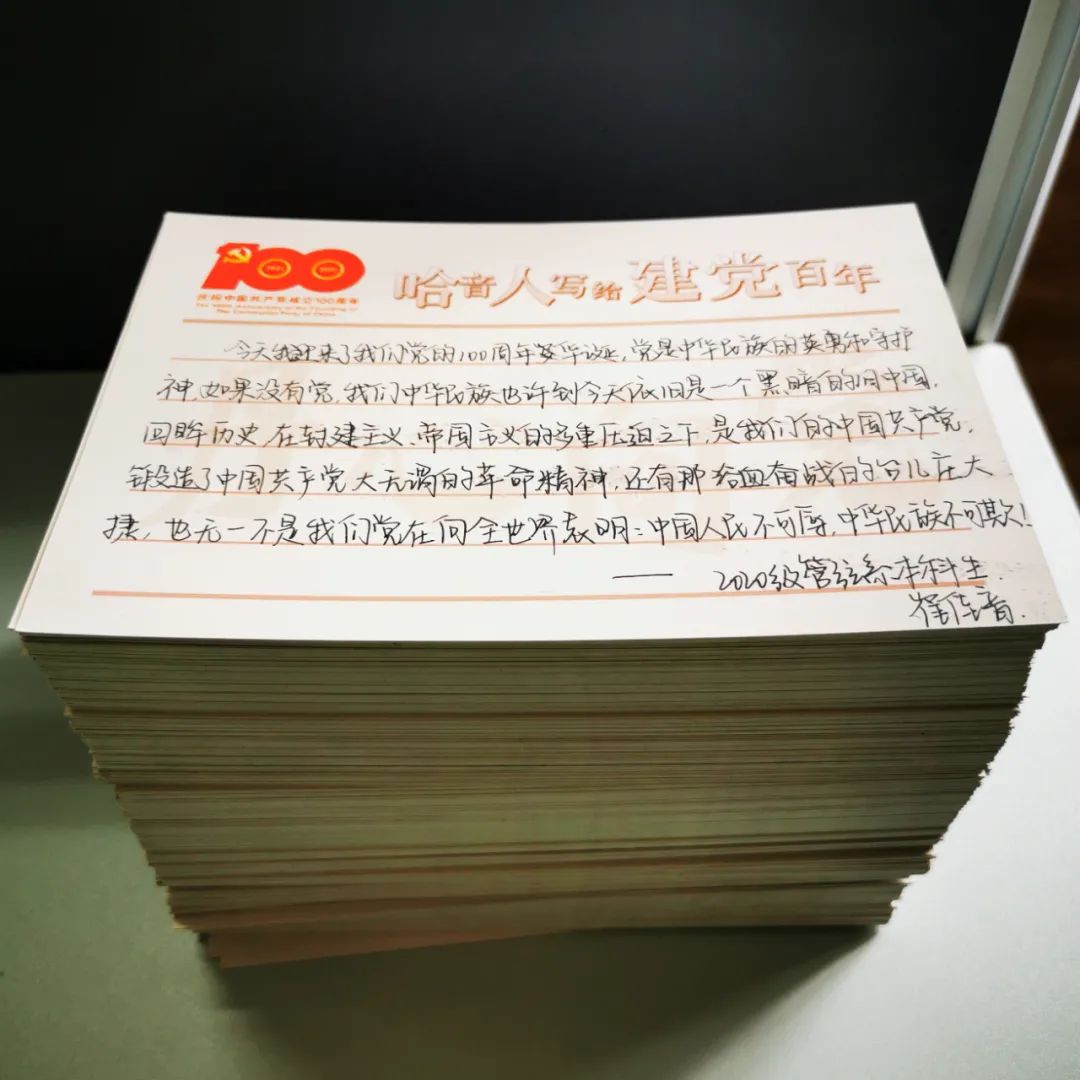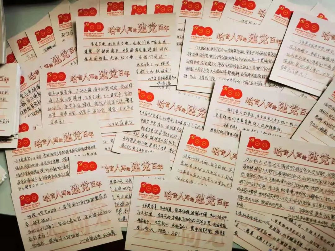 在全国上下庆祝建党百年之际,学院团委组织师生开展“书写祝福 献礼百年——哈音人写给建党百年”活动,共收到师生600余封写给党的信,字里行间表达出哈音人对党和祖国的热爱。