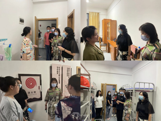 在寝室,张海彬一行对新生的到来表示诚挚欢迎,亲切询问大家对学院环境是否满意、生活中有什么具体困难等;并叮嘱大家要提高安全防范意识,保证人身和财产安全,室友之间要相互理解、相互帮助。王岩深入了解学生专业学习经历、学习诉求等,提醒学生要努力学习专业课程,不断提升自身艺术素养,以优异的成绩回报父母与社会。