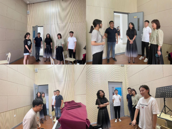 在琴房,老师们共同了解学生专业复测准备情况,解答与专业复测、师生互选有关疑问,鼓励学生强化专业技能训练。学生们纷纷表示,一定会认真学习,充分利用好学院给予的教学条件与资源,好好学习专业知识,为音乐文化传承、发展与创新贡献力量。