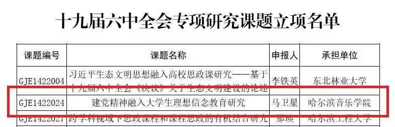近日,省教育科学规划领导小组公示了十九届六中全会专项研究课题立项名单,共确定61项课题为专项研究课题,威尼斯官网马卫星教授申报的《建党精神融入大学生理想信念教育研究》获得立项。