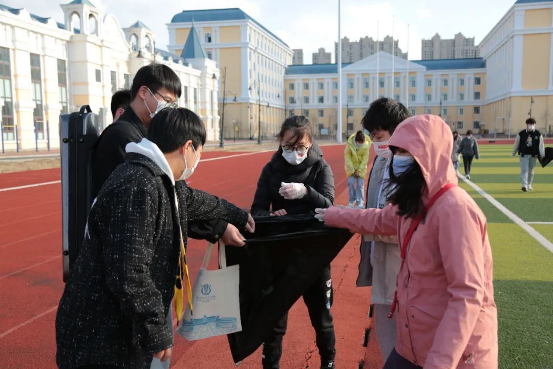 会后,师生党员积极投身到校园疫情防控工作之中,开展“致敬最可爱的人——慰问哈音抗疫一线工作人员”活动。为减轻后勤人员防疫工作压力,营造干净整洁、健康舒适的校园环境,杨玲带领全体学生党员对校门、校园内主要道路、体育场及周边绿化带等卫生区域进行打扫清理,校园面貌焕然一新;学生党员将最真挚的祝福写在明信片上,送给校园抗疫第一线的“勇士们”,师生党员共同完成一场难忘的劳动教育主题党日活动。