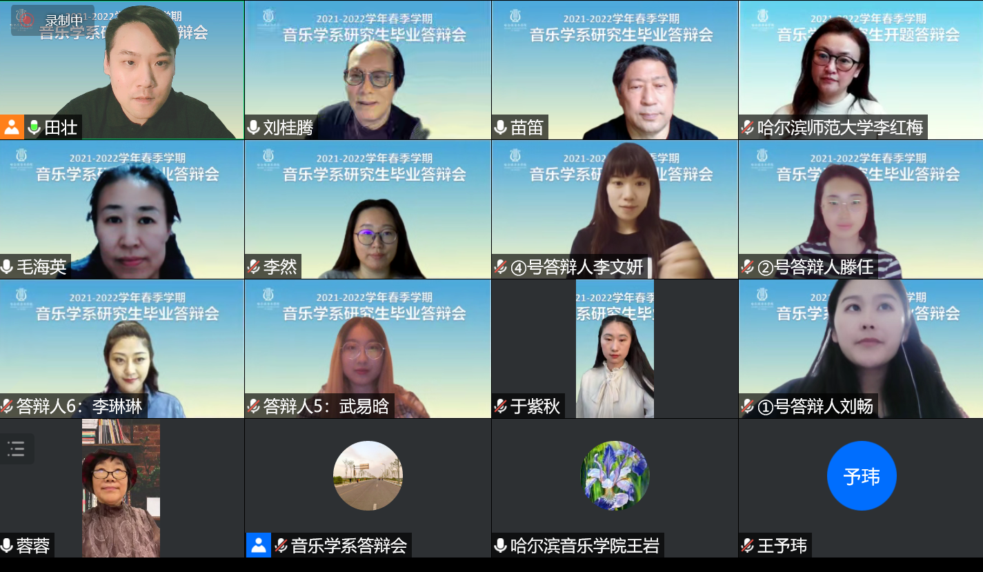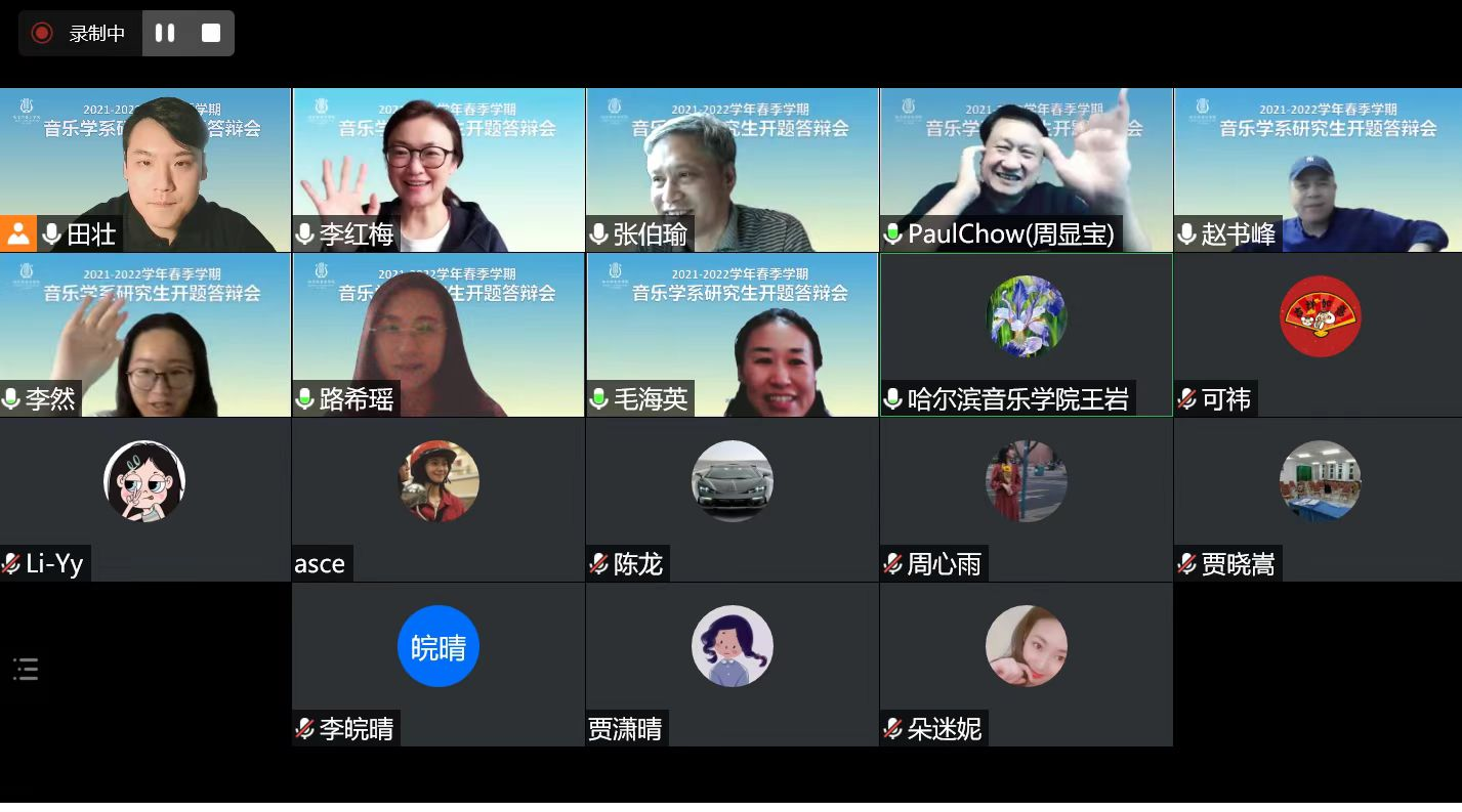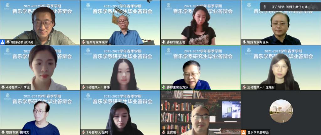 根据教育部、省教育厅和学院关于疫情防控期间研究生培养与学位授予相关工作要求,5月17日至25日,音乐学系通过腾讯会议平台在线上举办了研究生学位论文开题与答辩会共计14场。音乐与舞蹈学专业13位博士研究生和33位硕士研究生参加了学位论文开题与答辩。