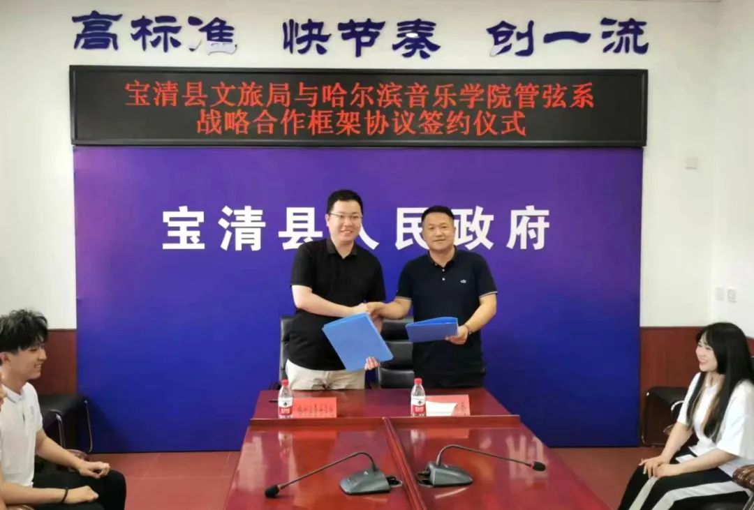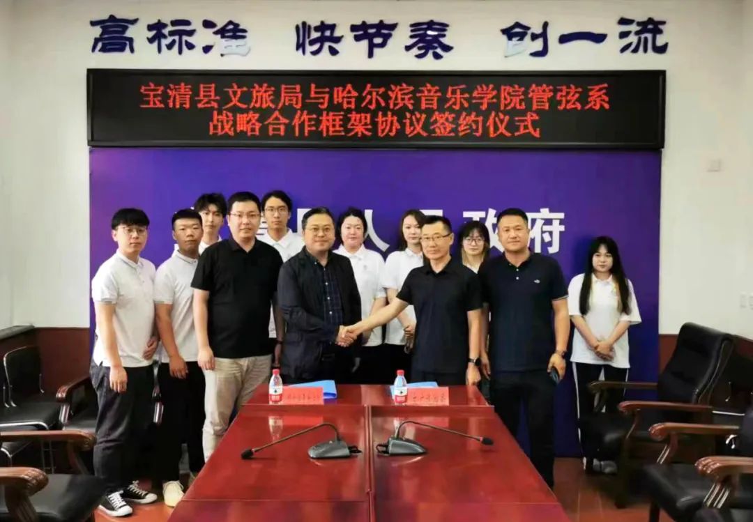 杨光表示,管弦系集管弦乐教学、研究、表演为一体,以管弦乐独奏人才、乐队演奏人才、管弦乐教师和音乐工作者为培养目标,对俄办学特色初见成效,中俄交响乐团建设日渐成熟;此次管弦系与宝清县文旅局的合作对推动管弦系高水平专业建设、提高教学科研质量、拓宽学生就业实习实践岗位具有重要意义,也将成为推动宝清县文化建设和文旅产业振兴发展的契机。
