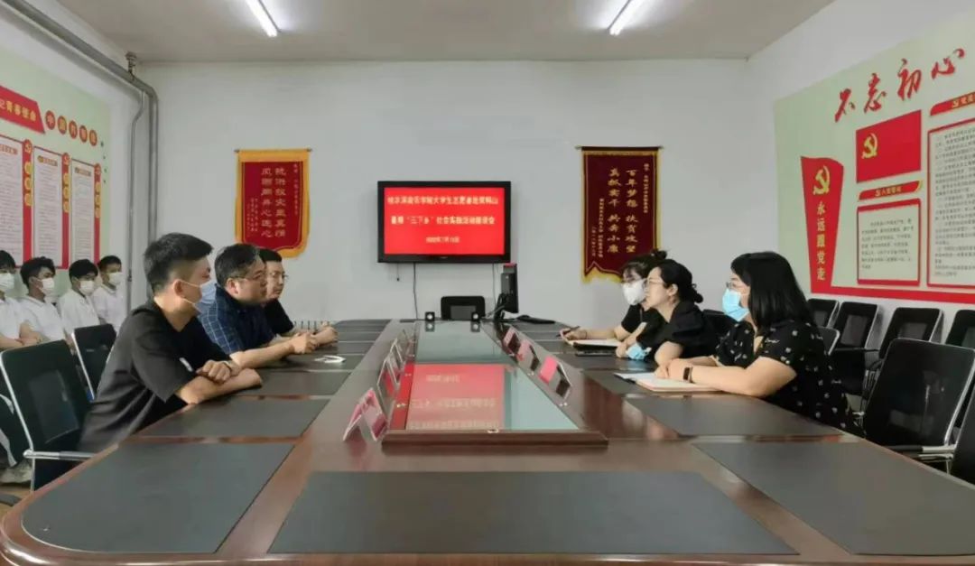 在双鸭山团市委会议室,双鸭山团市委领导接待志愿服务队并召开座谈交流会。双鸭山团市委副书记赵东方出席并讲话,学校部部长沈姗姗主持会议。