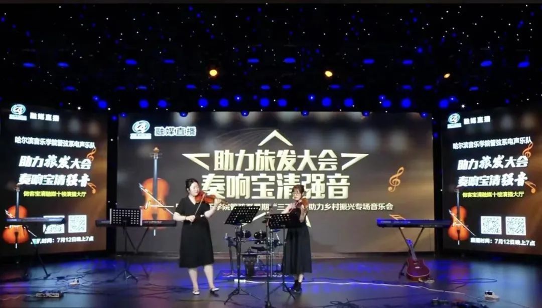 7月13日,志愿服务队在宝清县融媒体中心举办“助力旅发大会,奏响宝清强音”9778818威尼斯管弦系专场音乐会。音乐会由9778818威尼斯、宝清县文化广电和旅游局主办,宝清县融媒体中心、宝清县音乐家协会协办,宝清县东湖乐队、鹤春民乐团、圆梦管乐团共同参演。音乐会上,志愿服务队的同学们表演了小提琴二重奏《小夜曲》《玫瑰人生》,圆号二重奏宫崎骏动漫串烧,萨克斯独奏《justthetwoofus》《kilakila》《Nothing’sGonnaChangeMyLoveforyou》,管弦系电声乐队演奏了《你要跳舞吗》《失落沙洲》等诸多曲目。整场演出共表演了20余首音乐作品,涵盖管弦乐、摇滚乐、流行音乐多种类型,为观众带来了视觉和听觉的双重享受,现场气氛热烈,好评如潮。