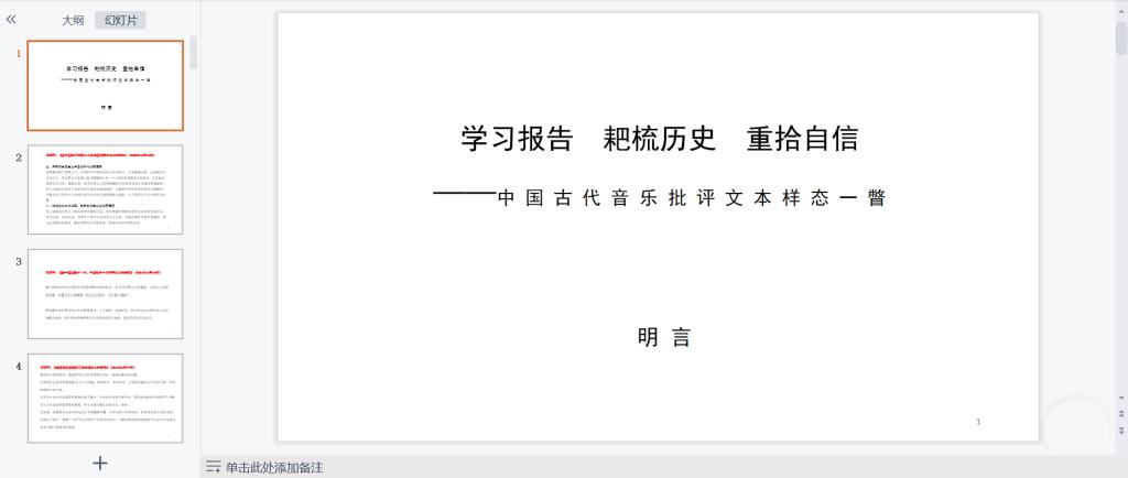 讲座中,明言以《学习报告 耙梳历史 重拾自信——中国古代音乐批评文本样态一瞥》为主题,强调了习近平总书记提出的博大精深的中华文明是中华民族独特的精神标识,是当代中国文艺的根基,也是文艺创新的宝藏;梳理了党的二十大报告中对中国传统文化、哲学社会科学学科与文艺工作的阐述与解读;依据所掌握的文本情况,讲授了凝练、固化的乐评文本的主要呈现样态,对我国古代的“经、论、说、志、辩、铭、记、赋、表、诗、词、判、序、传”等题材做了详细的举例讲解,让与会者对列举的中国古代音乐批评文本的样态问题有了初步的认识。