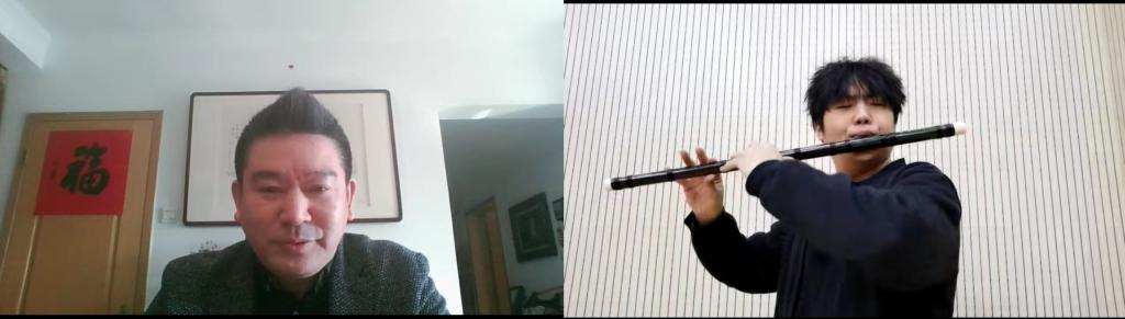 随后的大师课上,戴亚教授与系内的3位学生进行线上互动。通过《喜相逢》《深秋叙》《沂蒙山歌》三首经典曲目的演奏,指导演奏者应从大处着眼乐曲的基调和布局,从细节处理好乐曲的装饰音和气口;从乐曲气质、情绪渲染、技术调控等多个方面对演奏者进行指导。让学生们在处理乐曲思维上有了全方位的、崭新的认知。4个小时的精彩“专家微课堂”,不仅给大家带了全新的理论知识,也让师生们认识到加强基础学习重要性。民乐系通过“专家微课堂”提升了师生对作品的音乐内涵、艺术特色以及演奏技巧的掌控力,加深了同学们在后续学习、演奏上的思考和认知。