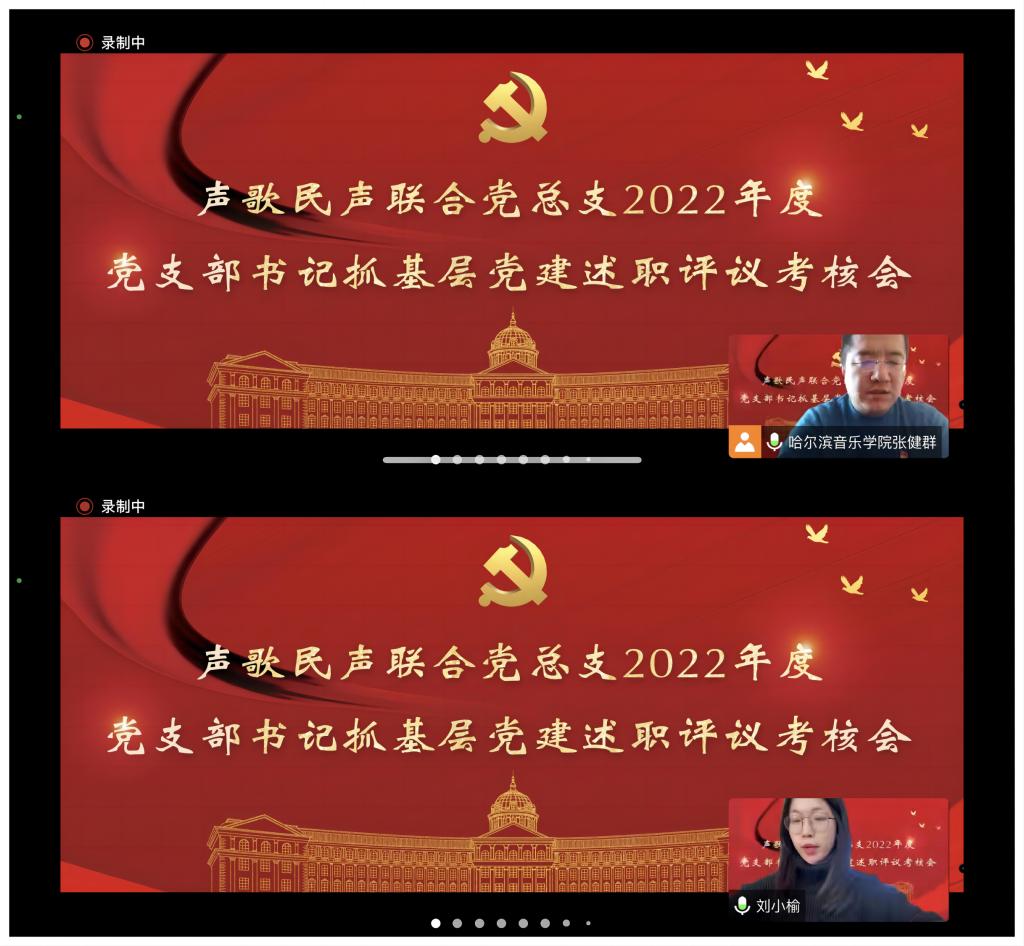会上,声乐歌剧系党支部书记金虹、民族声乐系党支部书记王庆辉、学生第一党支部书记张健群和学生第二党支部书记刘小榆分别汇报了本人2022年度抓基层党建工作的履职尽责情况,深刻查摆了在履职过程中存在的主要不足,提出了下一步加强和改进基层党建工作的思路和设想。