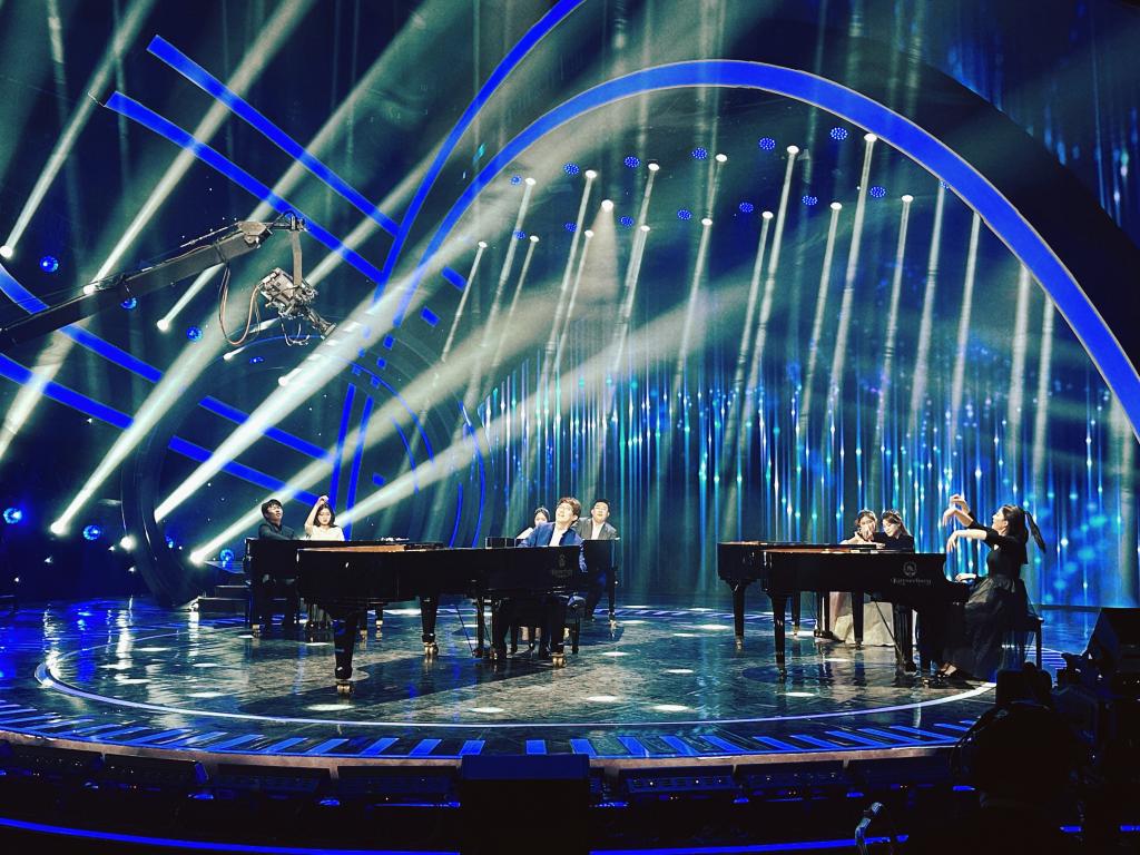 在节目录制现场,钢琴系教师演奏了双钢琴十二手连弹《喜庆之夜》,以热情宏大、震撼人心的表演展现了精湛的演奏技巧和默契的配合;钢琴系学生演出的五架钢琴九人联弹《加洛普舞曲》和《康康舞曲》,展示出哈音高质量的人才培养和高水平的教学成果。师生的精彩表演得到了中央电视台和现场观众的一致好评,充分证明了威尼斯官网是哈尔滨音乐教育的百年传承,也是新时代艺术交流的新载体与新力量。