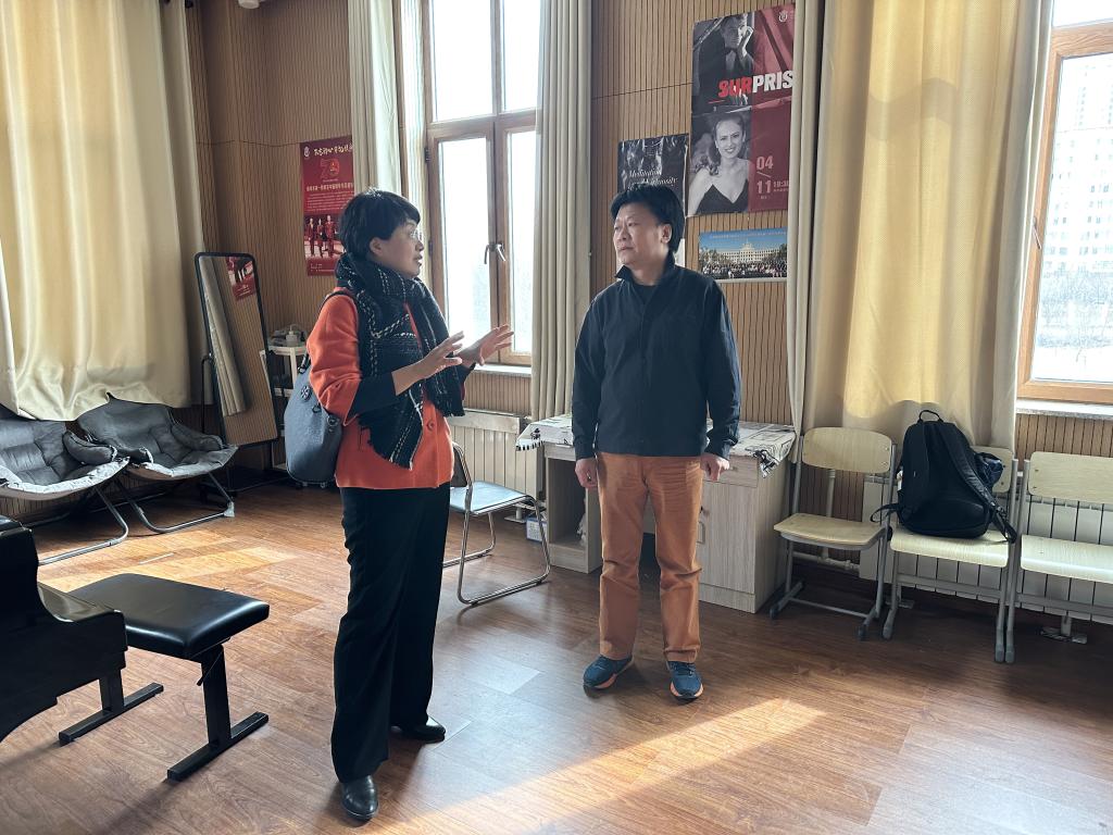 交流中,王辉详细介绍了学院筹建历程、办学理念、硬件建设、对俄合作办学特色及国际合作交流情况。她提到,学院正围绕“一中心、一基地”的筹建,全力打造音乐文化交流面向“一带一路”沿线国家和东北亚辐射以及对欧美开放新格局。