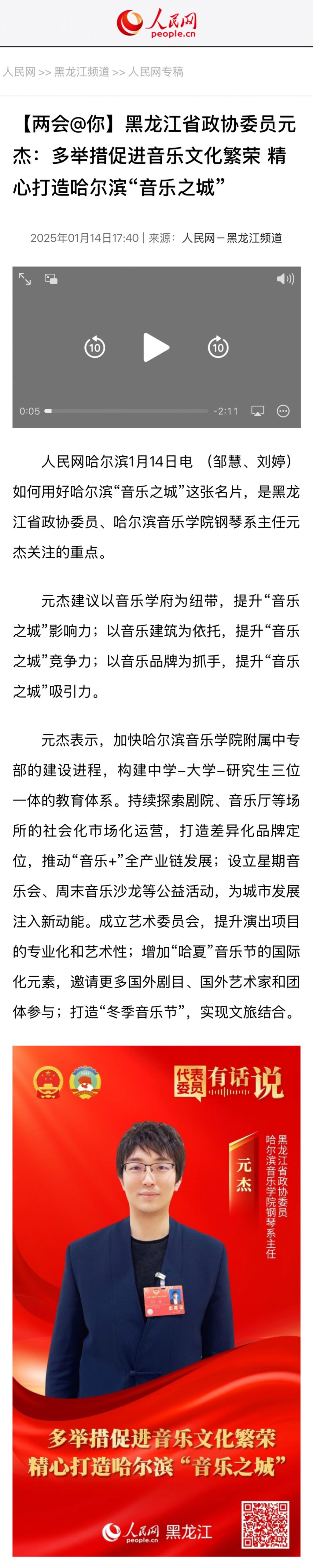 下一条:龙头新闻·黑龙江日报:两会声音 | 宋飞委员:打通大中小音乐人才培养通道